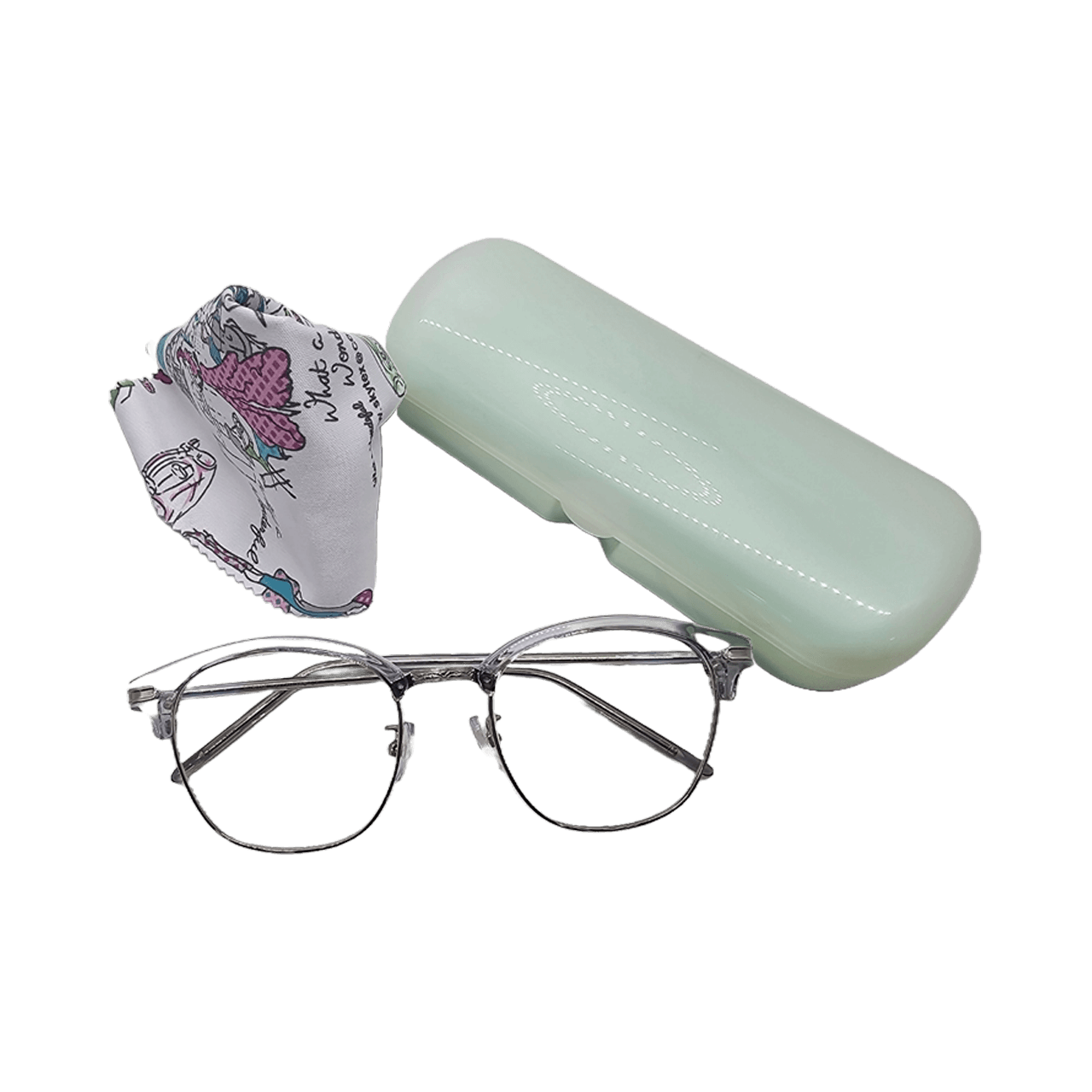 All eyeglasses include a frame, case, cleaner, UV blocking, and blue light blocking prescription lenses.